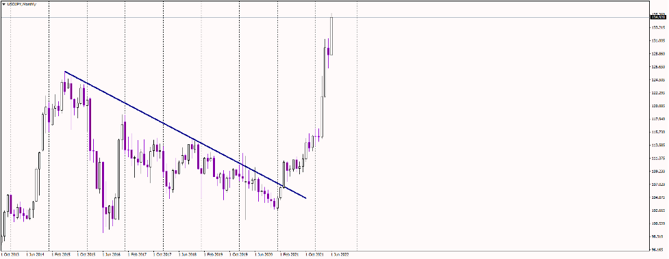 podzim 2022) existuje masivní divergence mezi Fedem (v současnosti zvyšuje sazby a provádí kvantitativní utahování) a BoJ (záporné sazby a provádí kvantitativní uvolňování),