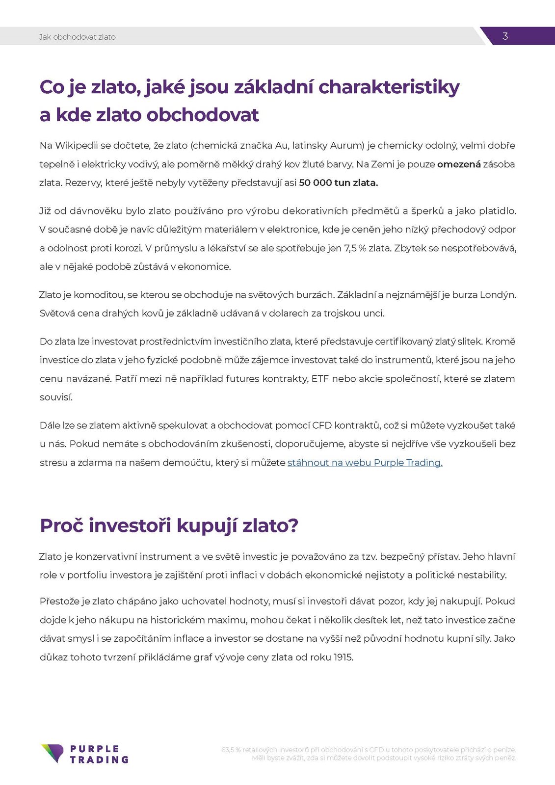 Zlato je chemický prvek se symbolem Au, ale z finančního hlediska je to drahý kov, který se v posledních stoletích používá k ražení mincí, šperků a mnoha dalších „finančních věcí“. Například faraoni ve starověkém Egyptě nebo starověkém Římě hromadili zlato a od té doby je považováno za symbol bohatství a moci. V nedávné době bylo zlato používáno jako peníze, ale od roku 1971 tomu tak již není, protože takzvaný zlatý standard přestal existovat. Zlato je relativně vzácné a od roku 2015 existuje pouze 186 700 tun tohoto kovu nad zemí.